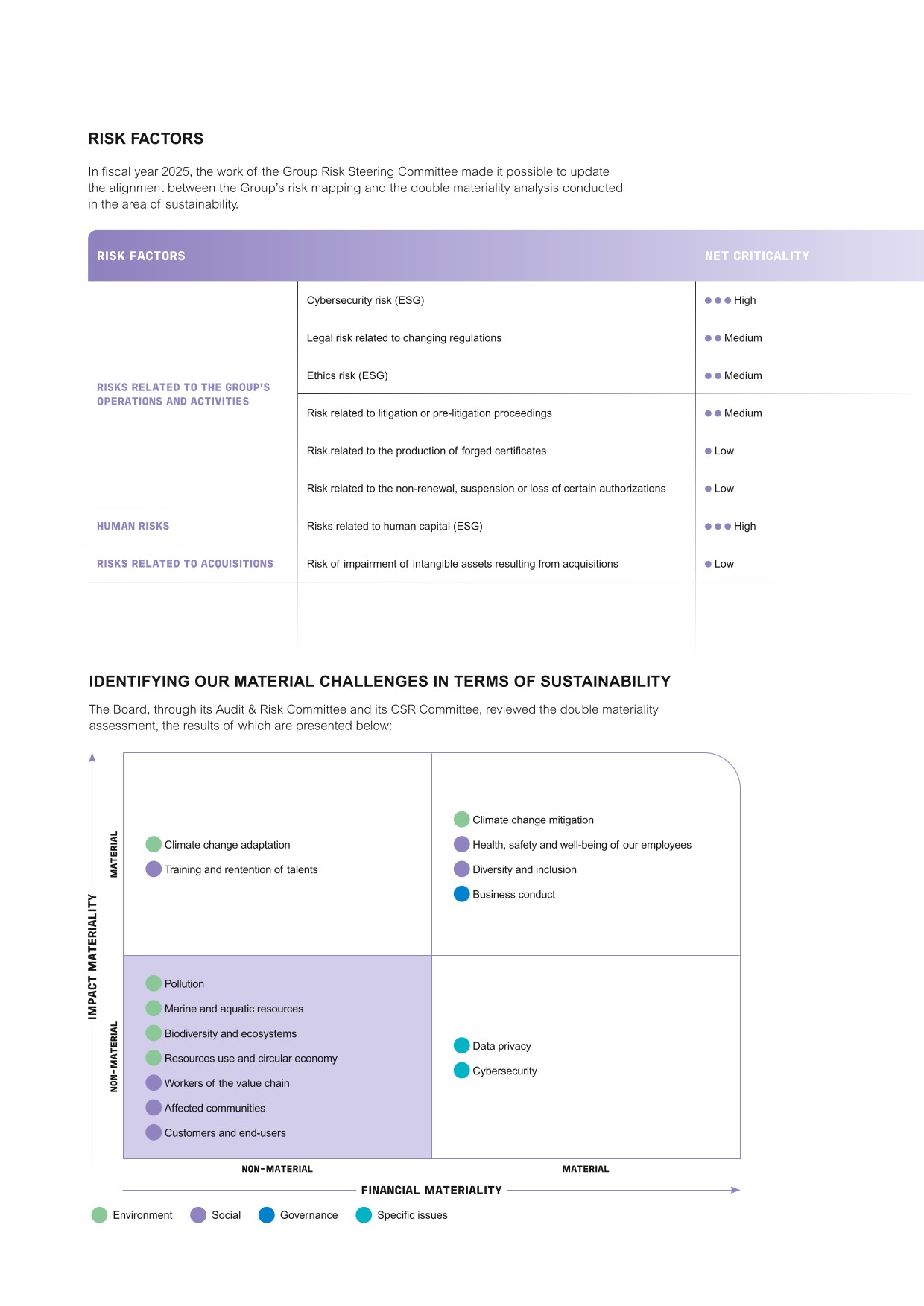 Quality and integrity embedded in the Group's culture and processes