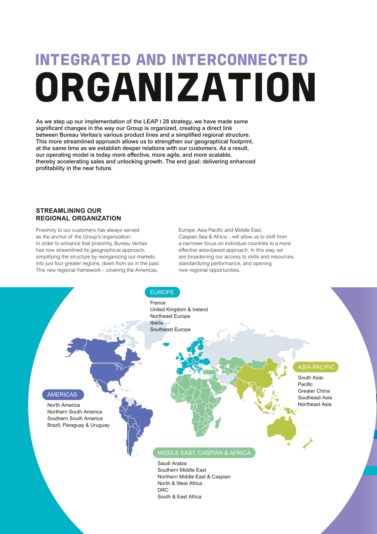 A regional hub organization enables Bureau Veritas to efficiently distribute knowledge, technical aid, and sales teams, and to leverage the benefits of scale.