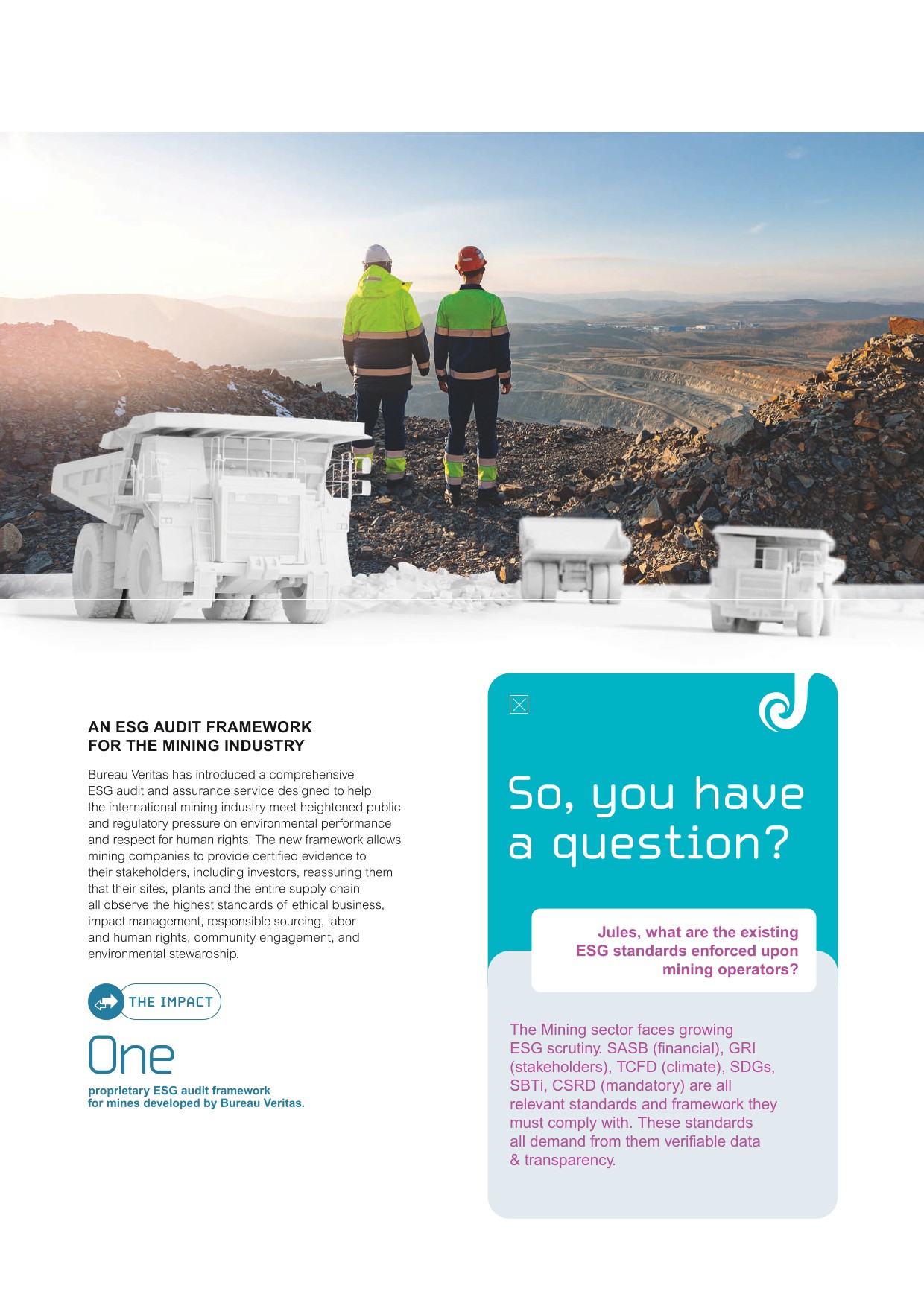 Depending on its clients' needs and on applicable regulations, standards or contractual requirements, Bureau Veritas acts: